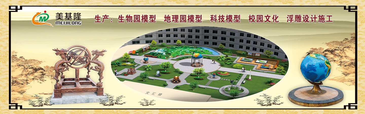 廣東順德美基隆園林藝術有限公司是集產品開發 , 設計制作校園雕塑文化、地理園、生物園、生態園、科技園,浮雕、人物雕像仿真動物,綠化校園中小學實驗室配套為一體的大型教學設備企業廠家。廣東順德美基隆園林藝術有限公司自成立以來,堅持以質量立品牌、藝術求真知、專業為教育、服務守承諾的服務宗旨,致力于教育行業,并為教育事業提供高品質的設計、制作、銷售、安裝等優質的服務。